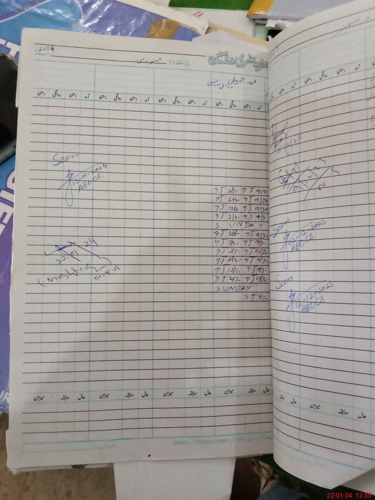| CNIC | Full Name | Designation | R/C | Absence During Last Calender Month |