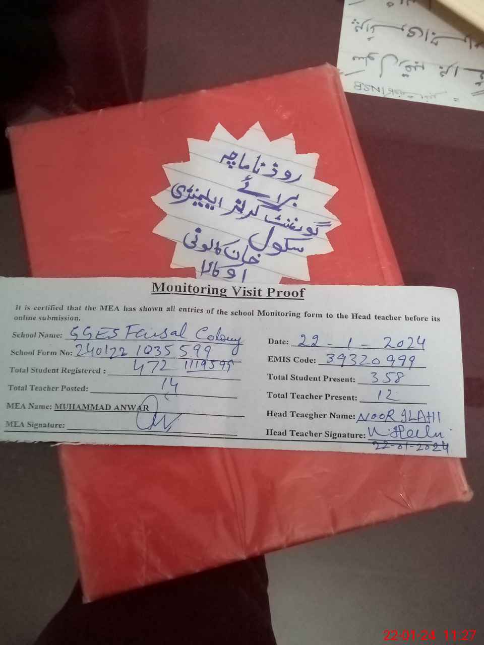 | EMIS Code: 39320999 | Name of School: GGES FAISAL COLONY OKARA | |||