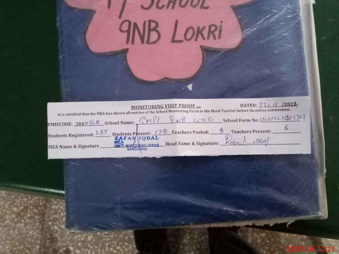 | EMIS Code: 38410528 | Name of School: GMPS CHAK NO.9 NB LOKRI | |||