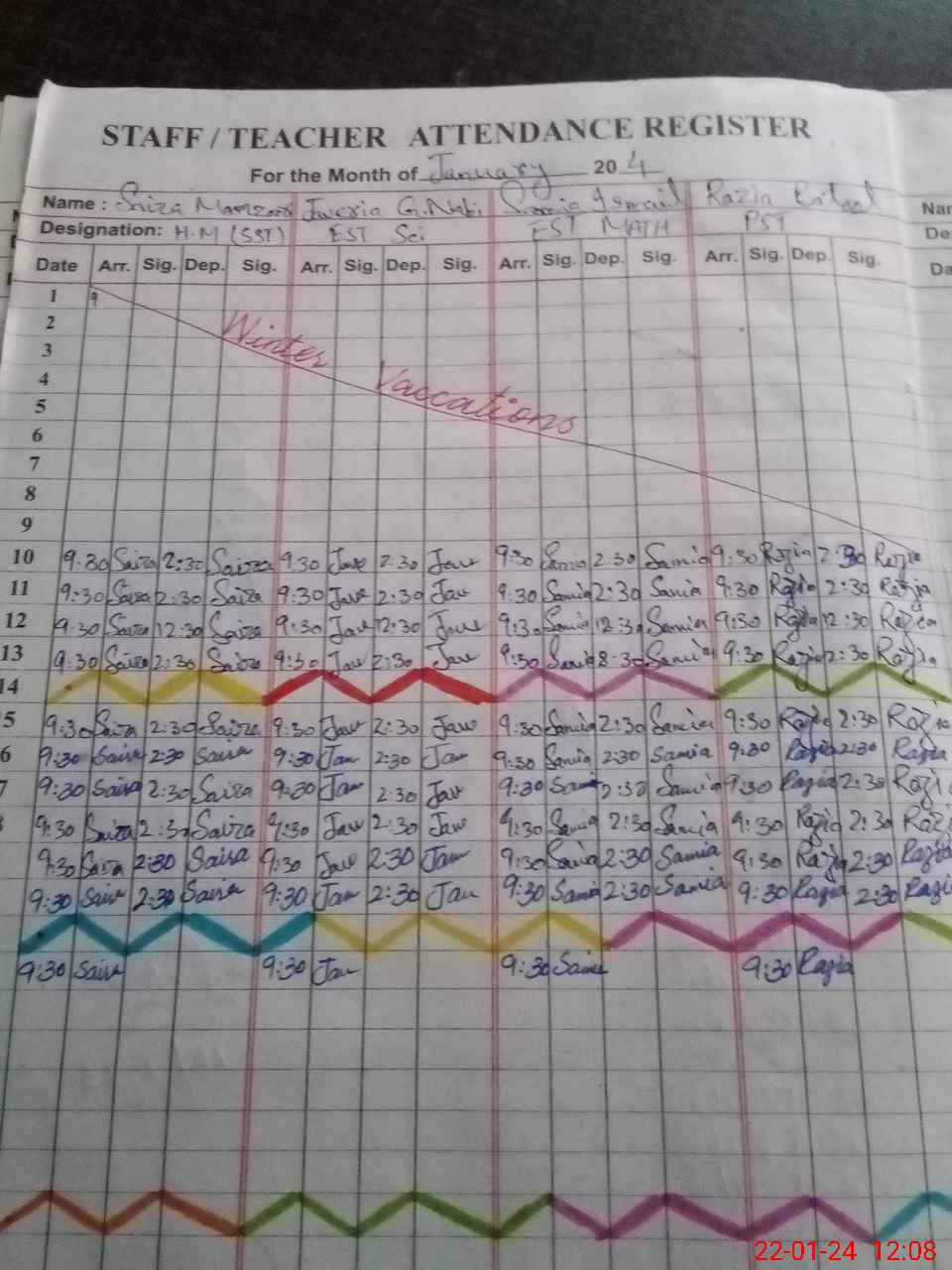 | No. of Students Present - Female | 0 | 0 | 23 | 30 | 31 | 14 | 17 | 25 | 29 | 21 | 19 | 209 | ||||
