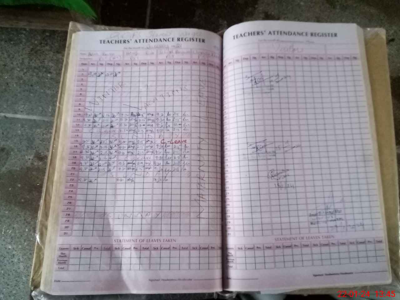 | Leave | Duty | Absent | Maternity | Medical | Ex- Pak |