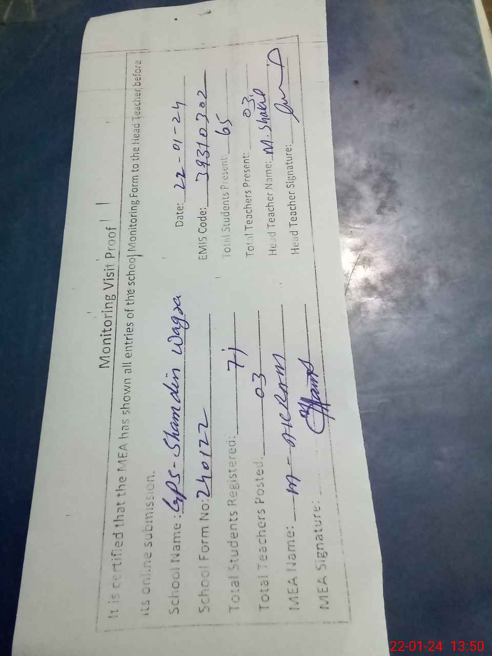 | EMIS Code: 39310302 | Name of School: GPS SHAM DIN WAGRA | |||