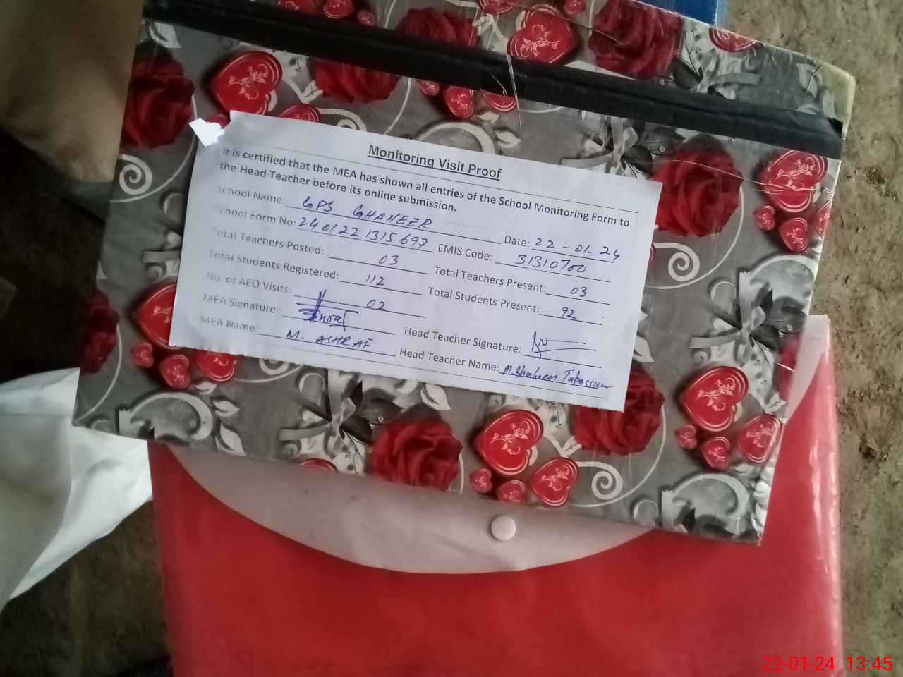 | Attendance Register | Head Teacher | MEA with School | Visit Proof |