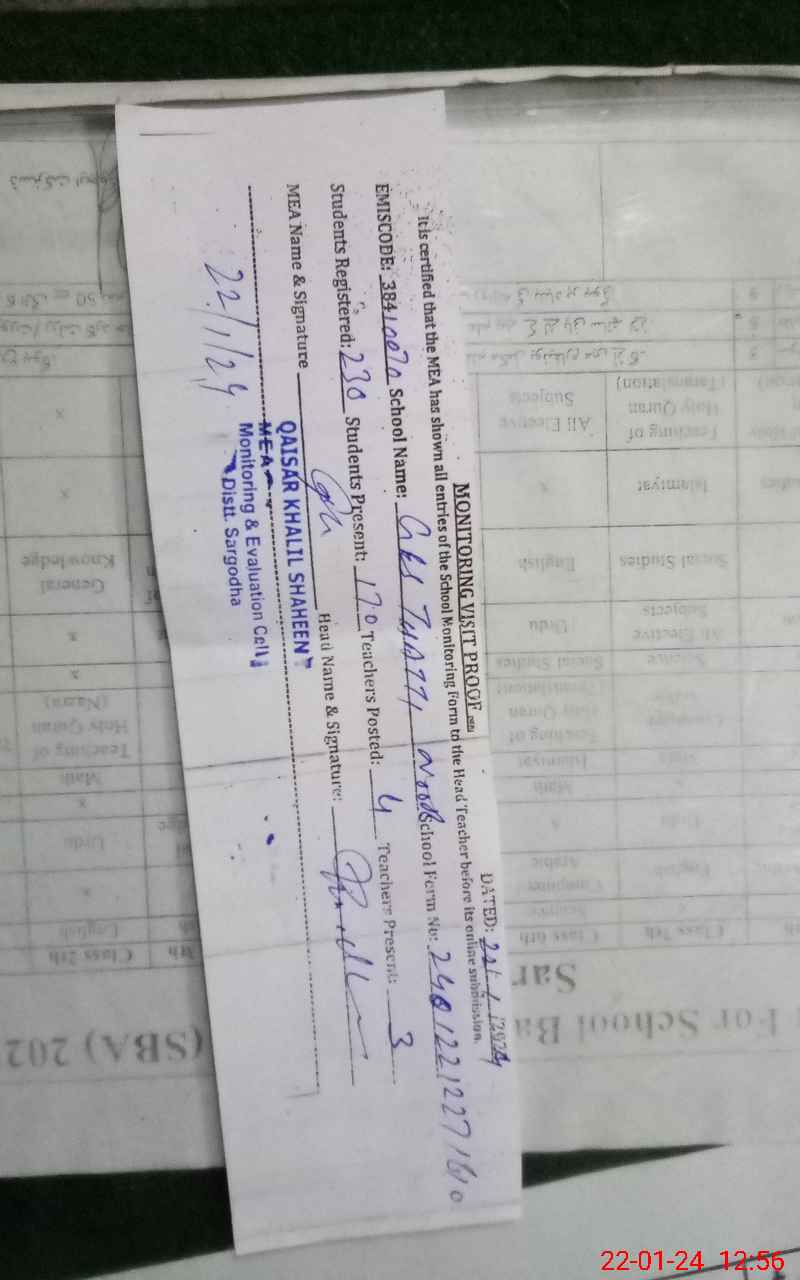 | Certified that this School was Inspected by the Undersigned MEA/DMO Today and the Information Stated Above is as Per Record. | |||||