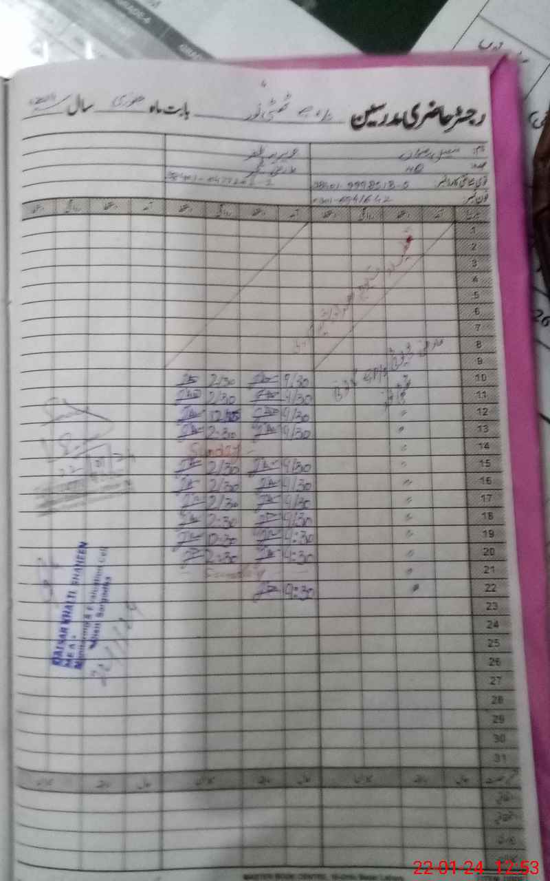 | CNIC | Full Name | Designation | R/C | Absence During Last Calender Month |