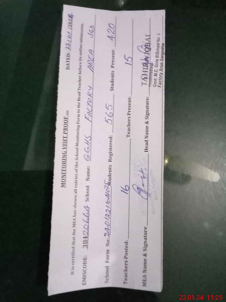 | EMIS Code: 38420664 | Name of School: GGHS FACTORY AREA SARGODHA | |||