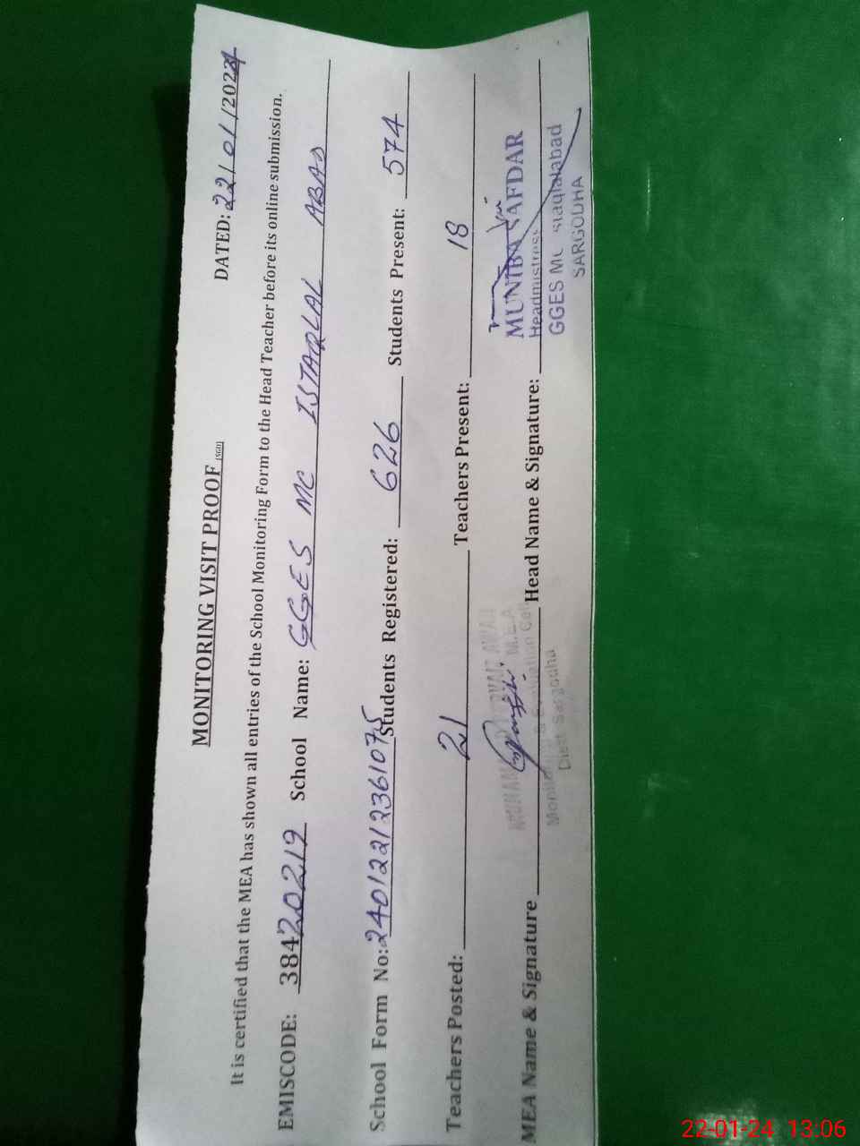 | EMIS Code: 38420219 | Name of School: GGES MC ISTAQLAL ABAD SARGODHA | |||