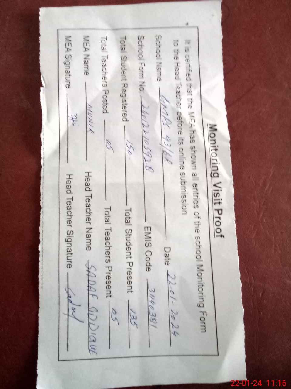 | EMIS Code: 31140381 | Name of School: GMPS CHAK 93/6-R | |||