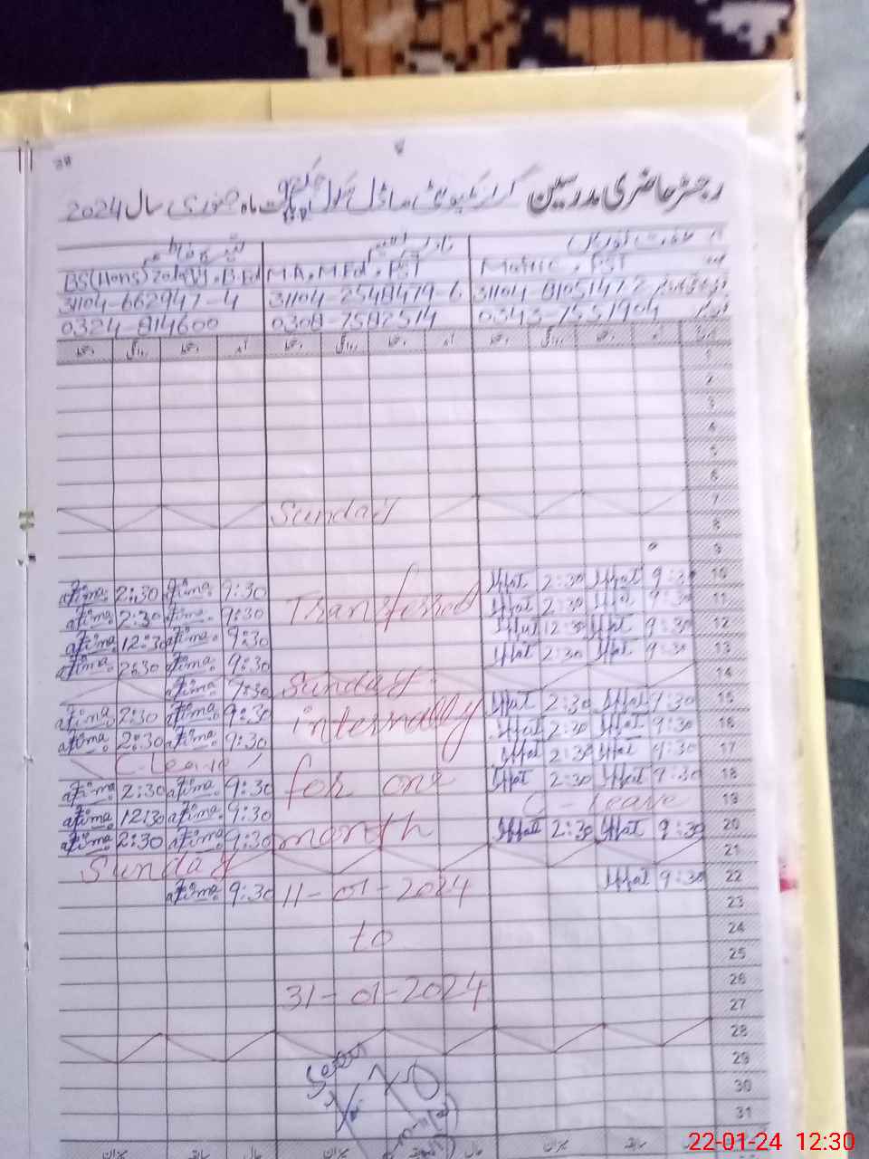 | Name: Lu**** Ya**** Designation: (School Headmaster's/Headmistress's) PST Phone/Cell Number: 03**** |