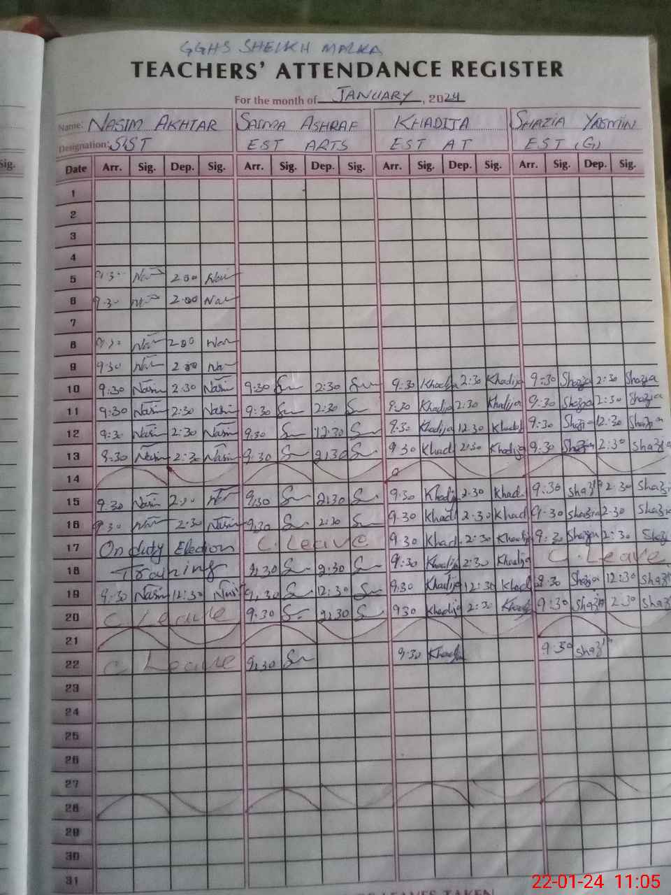 | CNIC | Full Name | Designation | R/C | Absence During Last Calender Month |