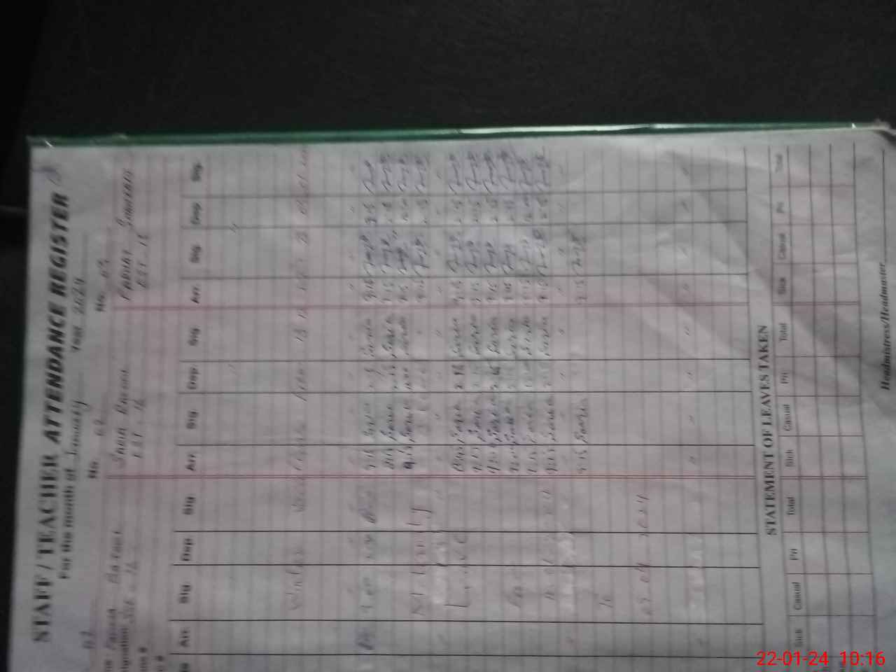 | CNIC | Full Name | Designation | R/C | Absence During Last Calender Month |