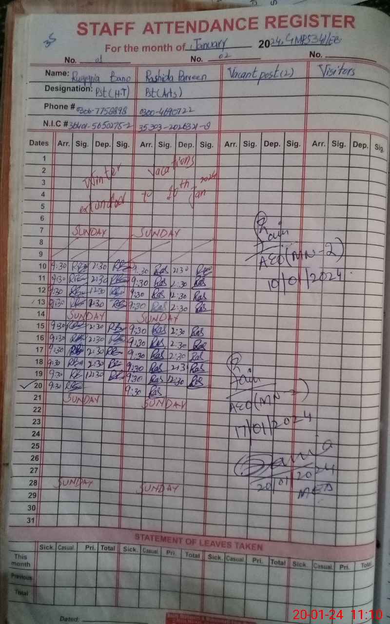 | CNIC | Full Name | Designation | R/C | Absence During Last Calender Month |