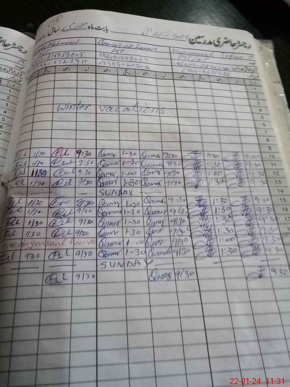 | CNIC | Full Name | Designation | R/C | Absence During Last Calender Month |