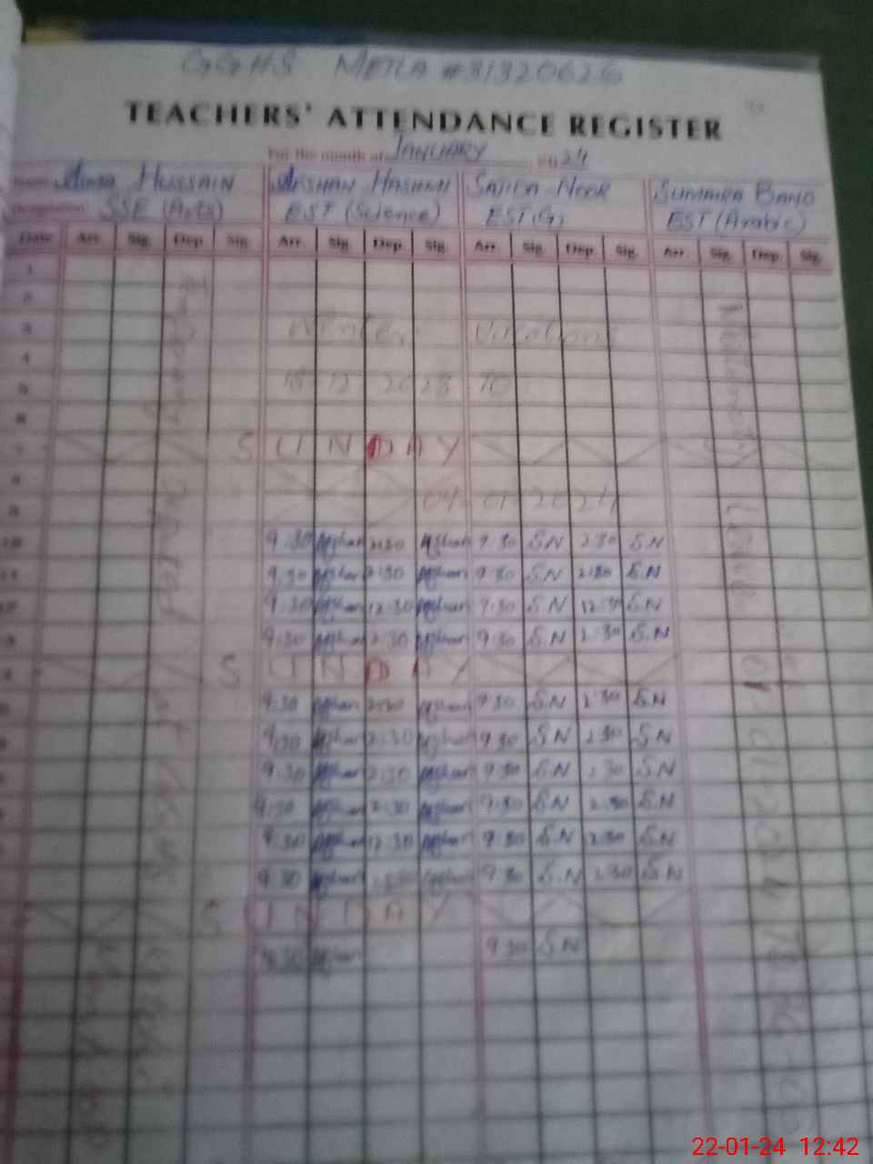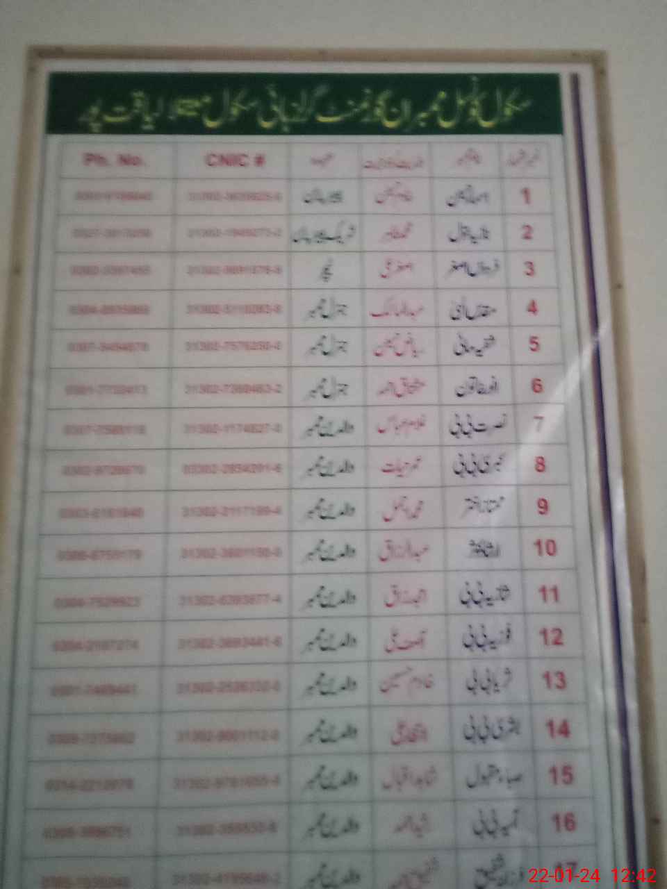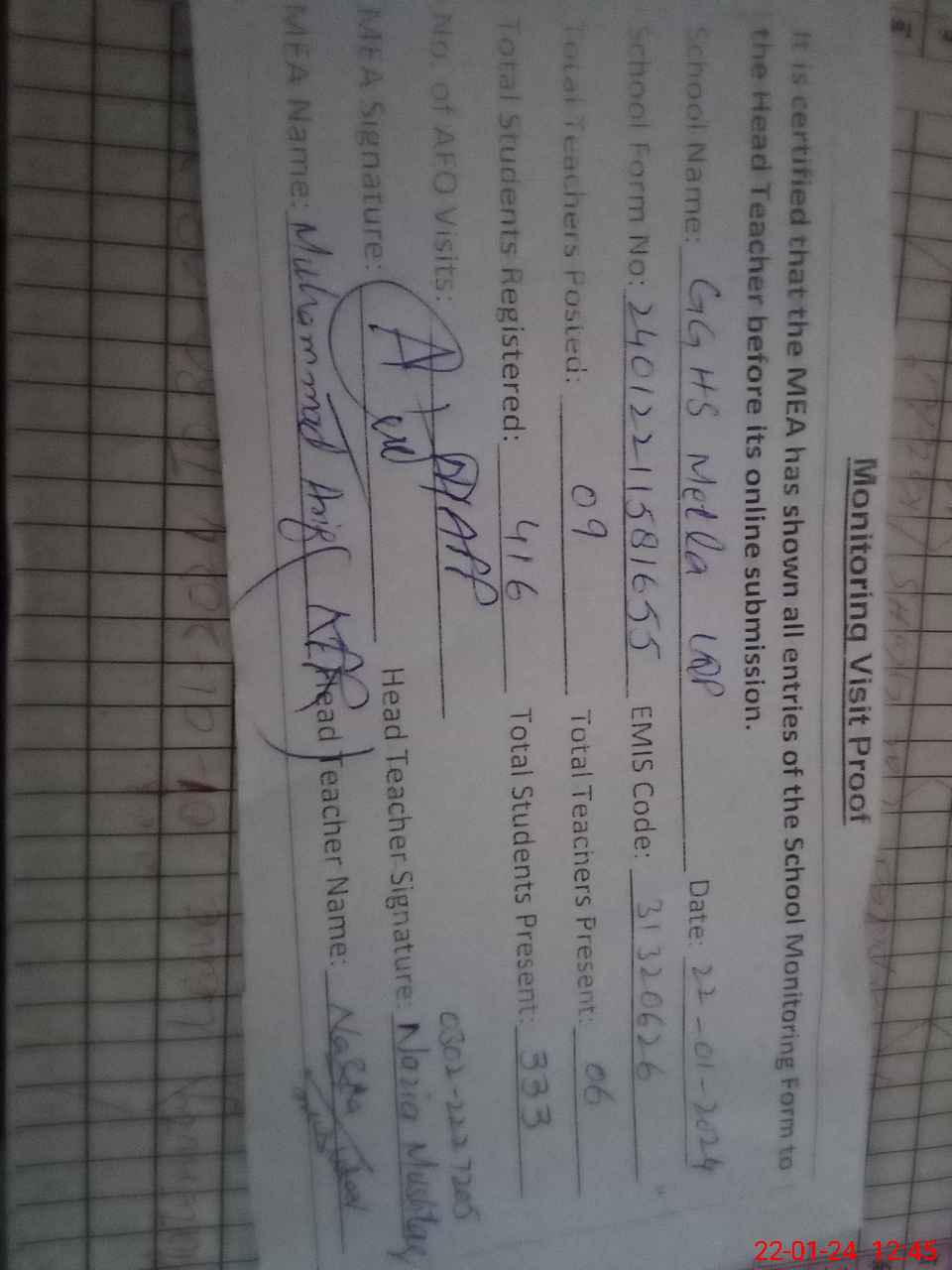 | Name: AS**** HU**** Designation: (School Headmaster's/Headmistress's) SSE (Arts) Phone/Cell Number: 03**** |