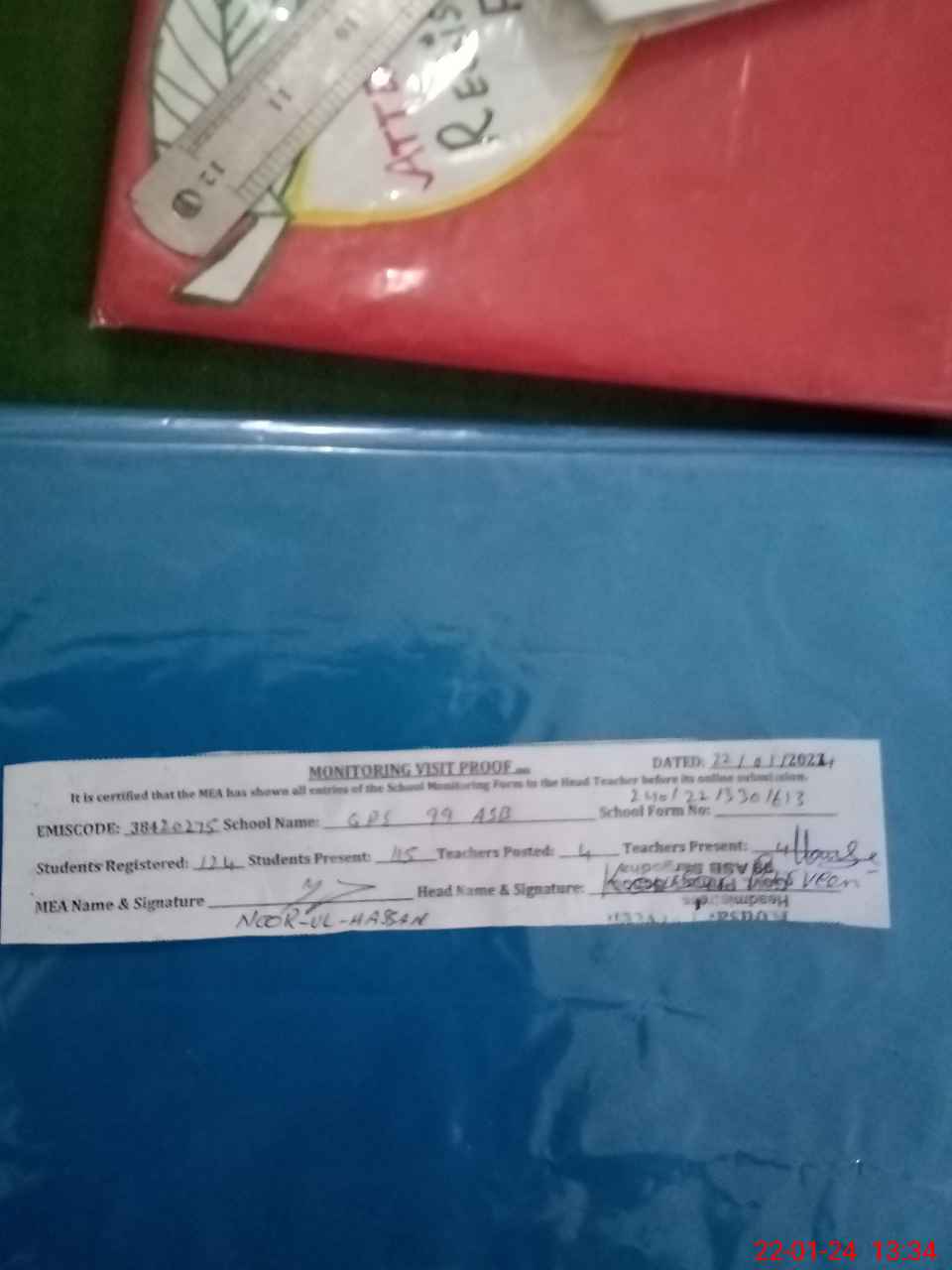 | EMIS Code: 38420275 | Name of School: GPS CHAK NO.99 A-SB | |||