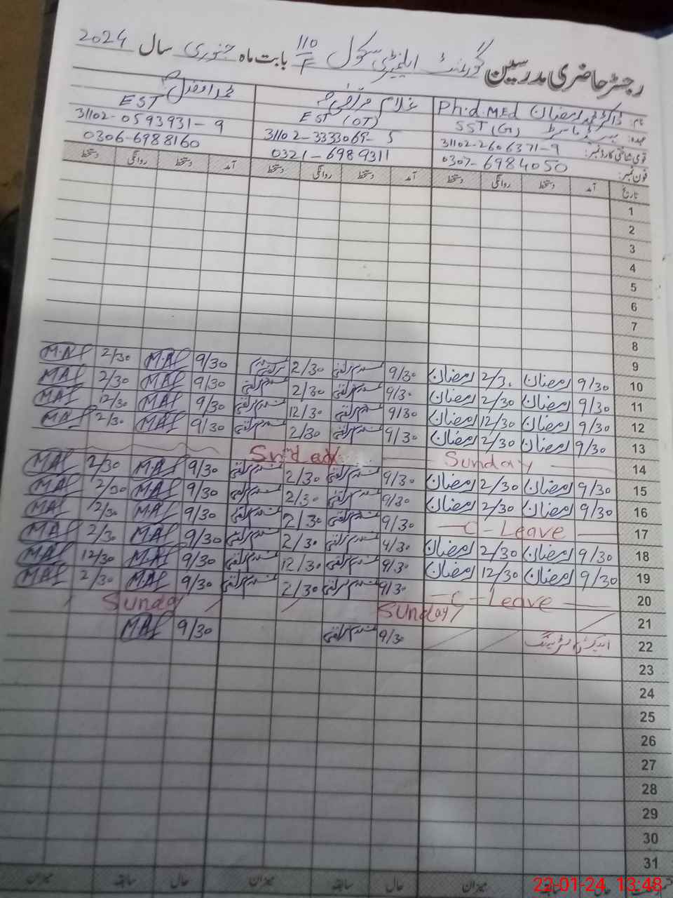 | CNIC | Full Name | Designation | R/C | Absence During Last Calender Month |