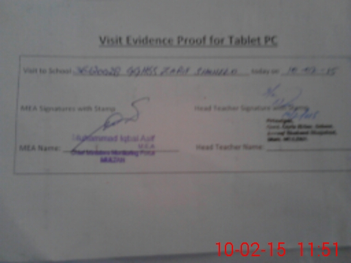 | Attendance Register | Head Teacher | MEA with School | Visit Proof |
