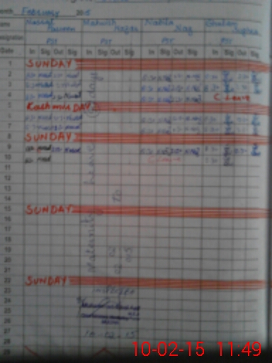 | CNIC | Full Name | Designation | R/C | Absence During Last Calender Month |