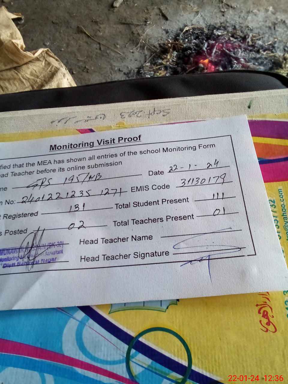 | EMIS Code: 31130179 | Name of School: GPS CHAK NO.195/HB (S) | |||