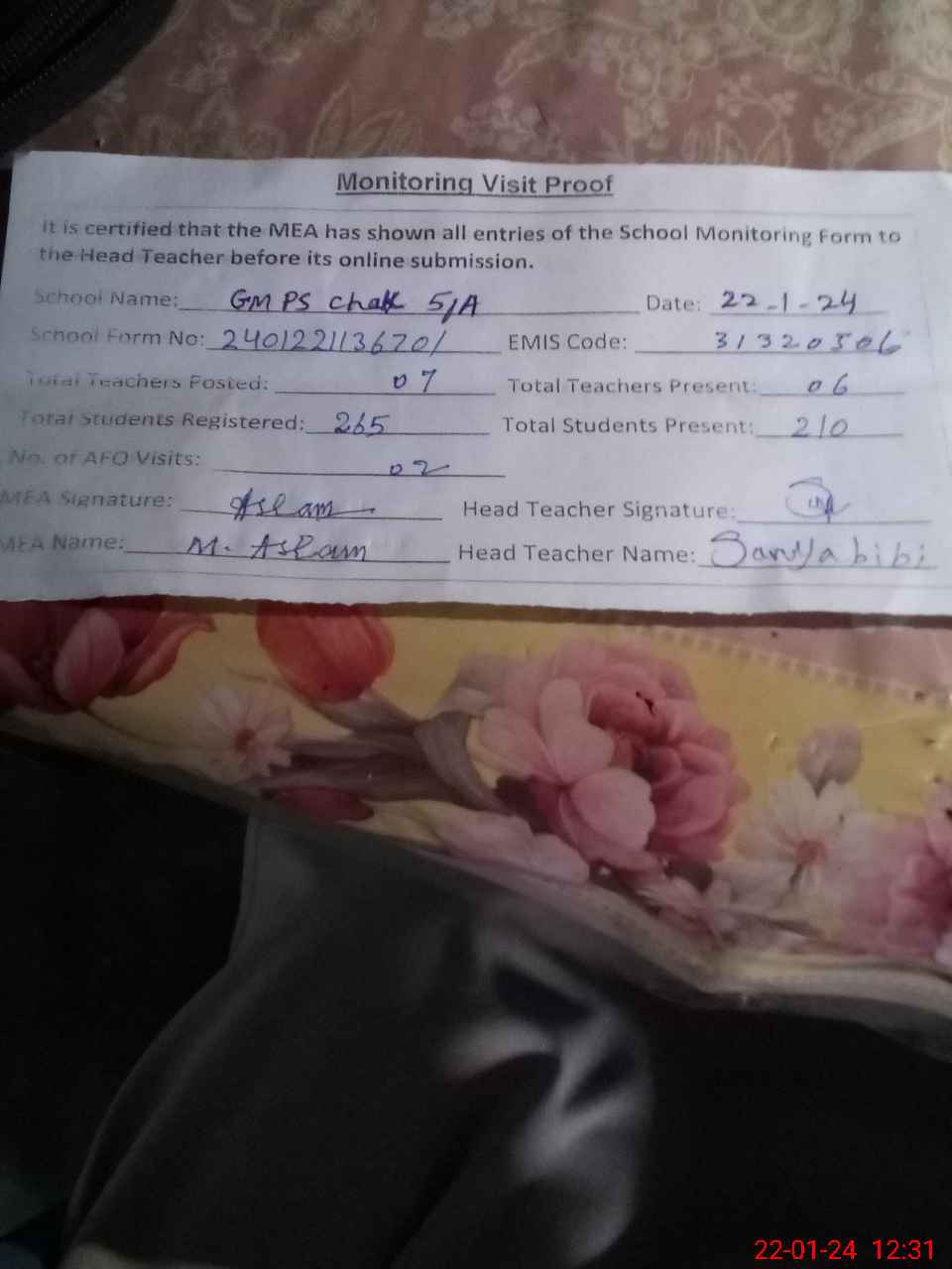 | EMIS Code: 31320506 | Name of School: GMPS CHAK NO.5/A | |||