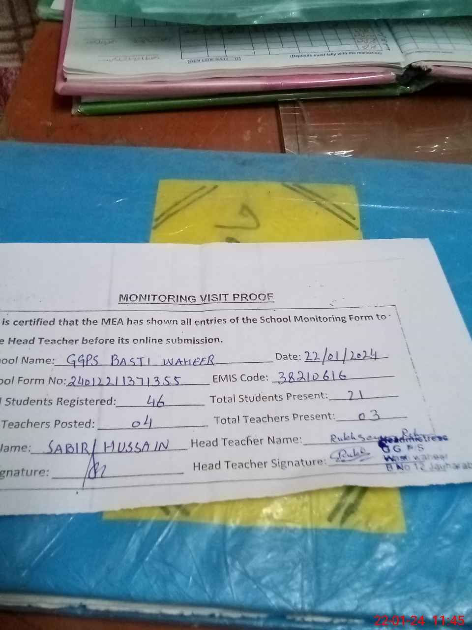 | EMIS Code: 38210616 | Name of School: GGPS BASTI WAHEER | |||