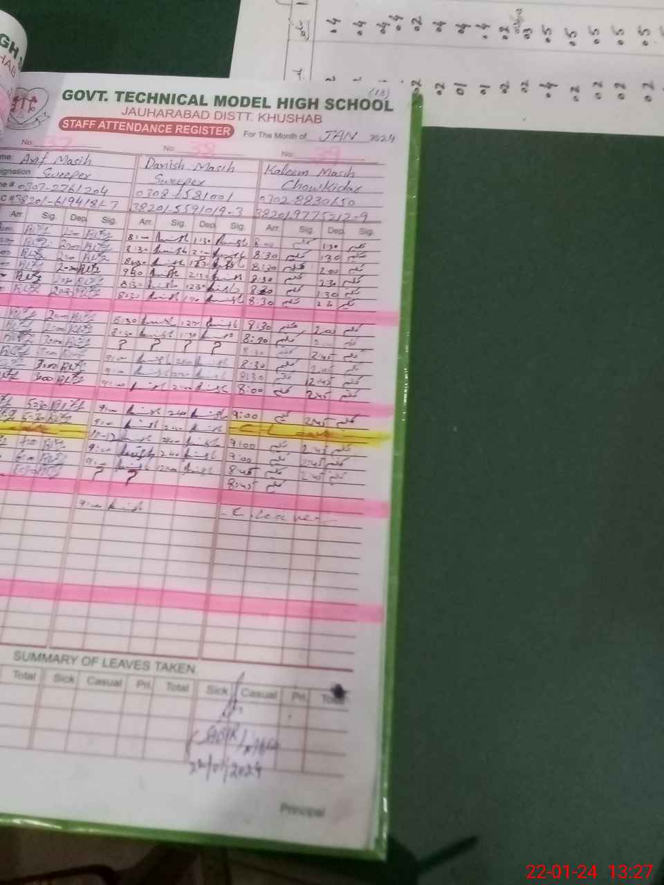 | 38**** | Ka**** Ma**** | CHAWKIDAR | Contract | 1 | 0 | 0 | 0 | 0 | 0 | 0 | 0 | 1 | Casual |