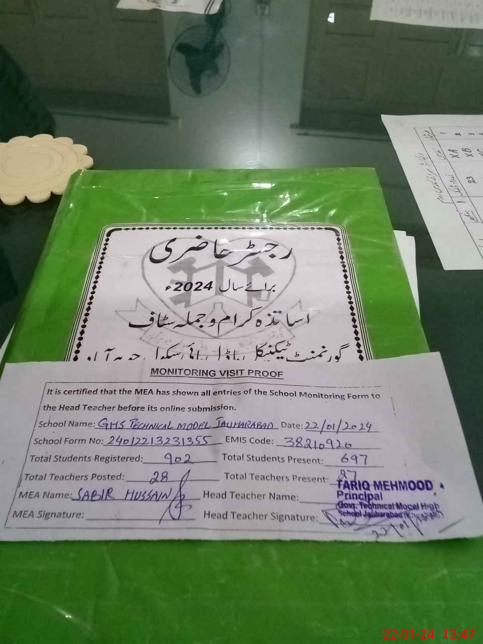 | Attendance Register | Head Teacher | MEA with School | Visit Proof |