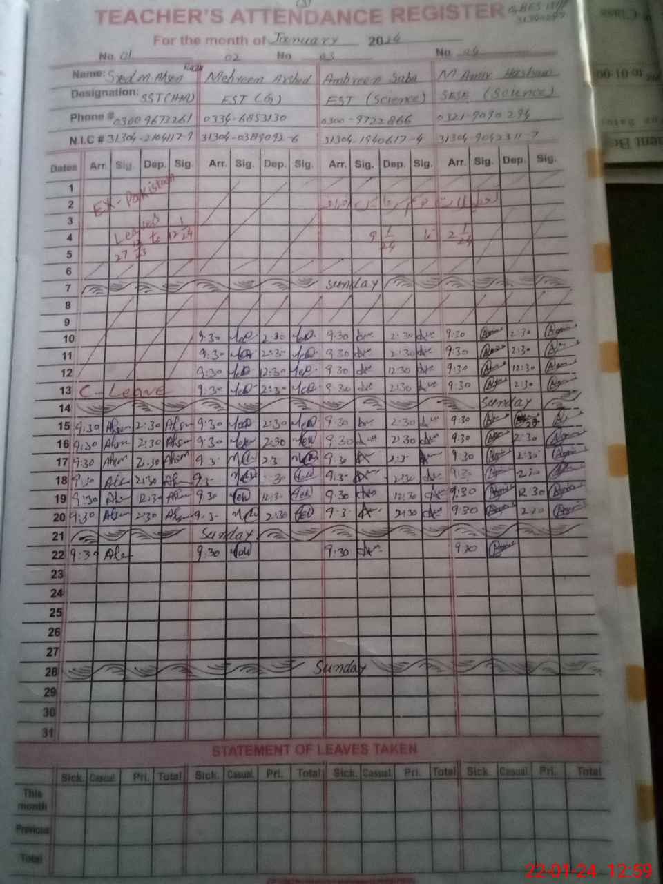 | Name: Sy**** MAh**** Ra**** Gi**** Designation: (School Headmaster's/Headmistress's) SST Phone/Cell Number: 03**** |