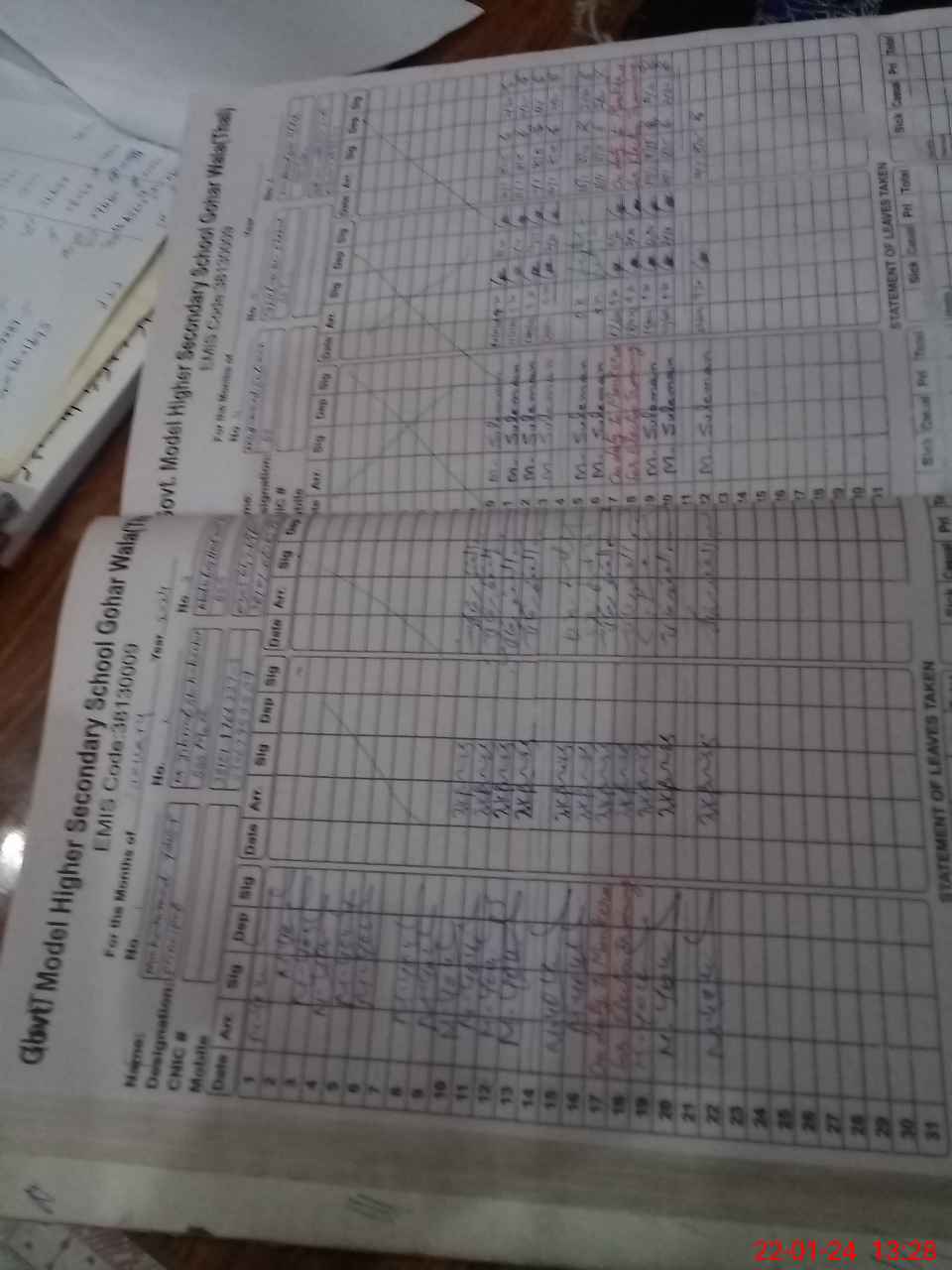 | CNIC | Full Name | Designation | R/C | Absence During Last Calender Month |