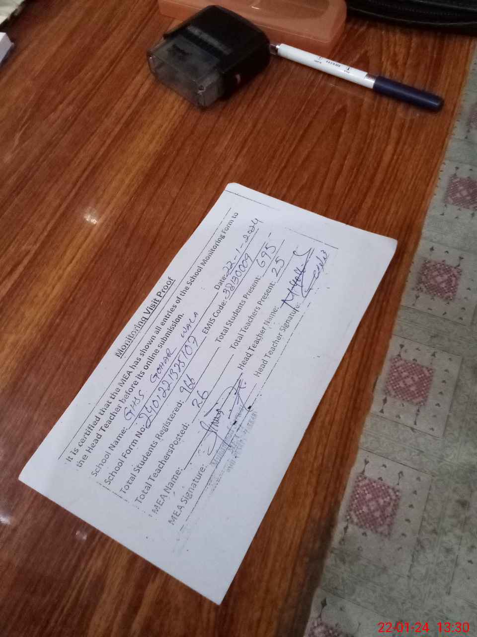 | Attendance Register | Head Teacher | MEA with School | Visit Proof |