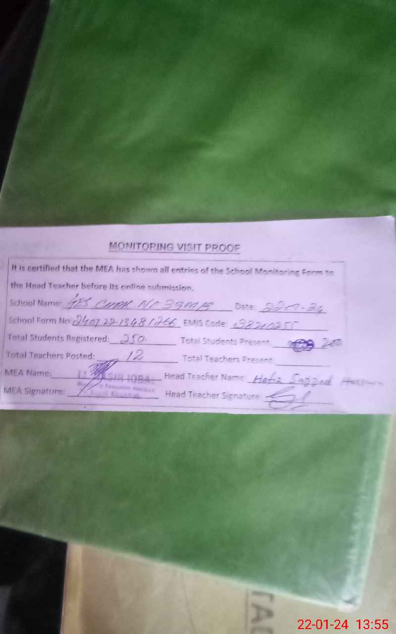 | EMIS Code: 38210255 | Name of School: GES CHAK NO 39 MB | |||