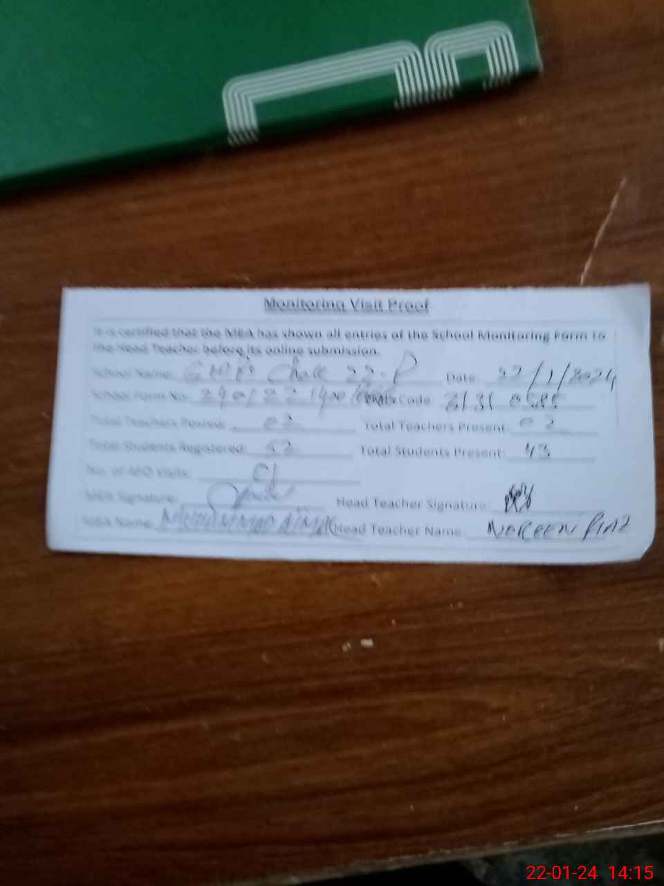 | EMIS Code: 31310585 | Name of School: GMPS CHAK 22/P | |||