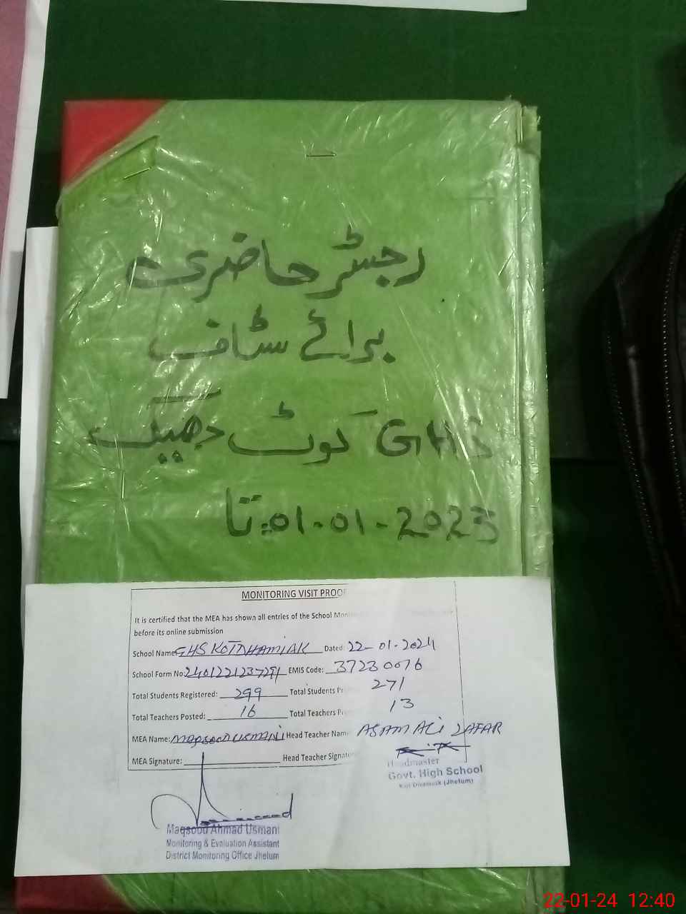 | EMIS Code: 37230016 | Name of School: GHS KOT DHAMIAK | |||