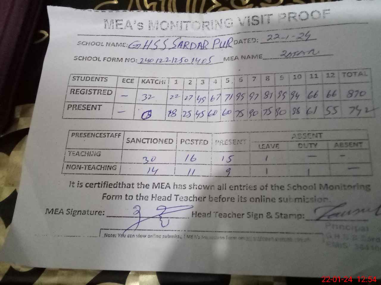 | EMIS Code: 36410014 | Name of School: GHSS SARDAR PUR, SARAI SIDHU | |||