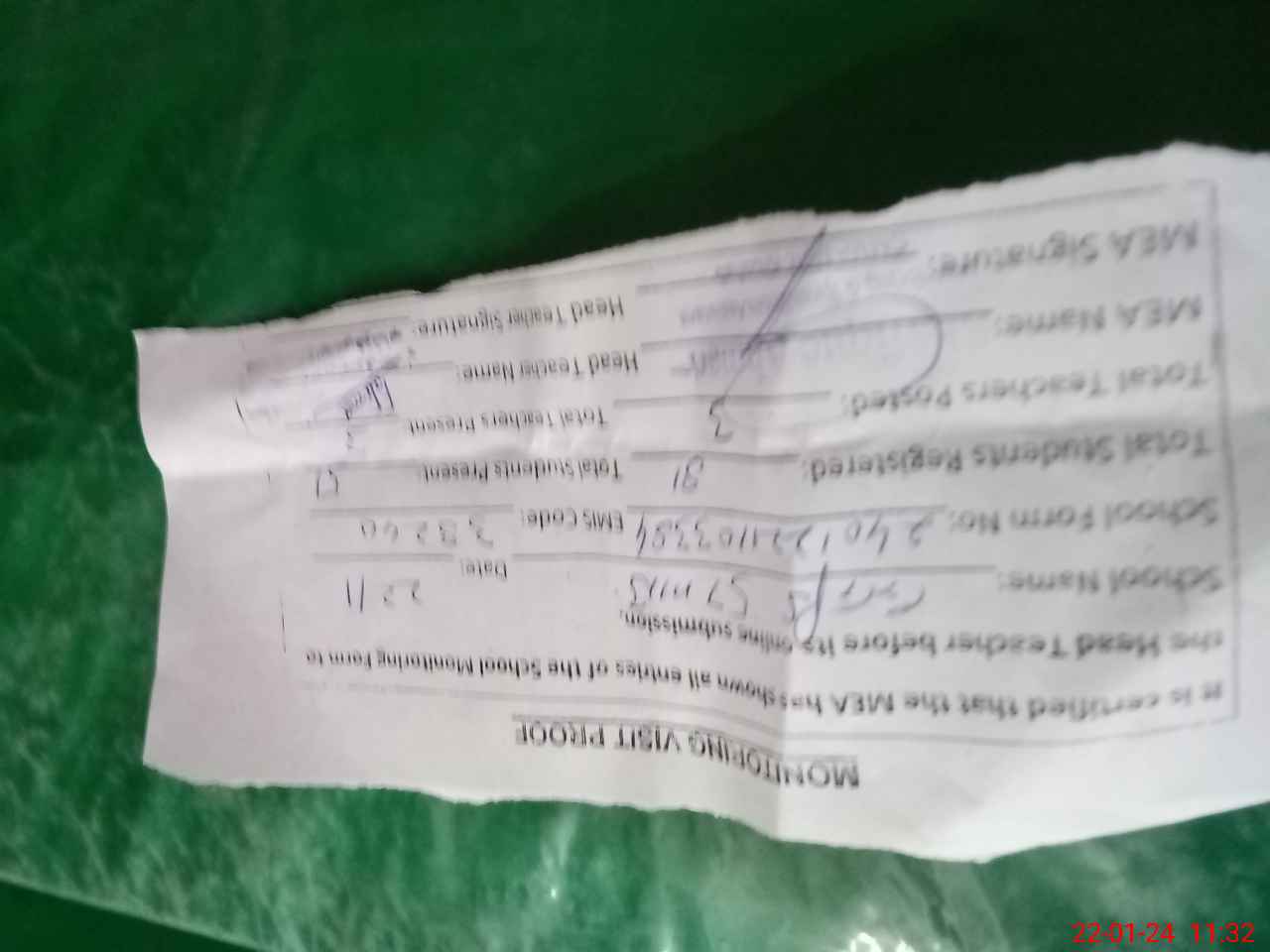 | Attendance Register | Head Teacher | MEA with School | Visit Proof |