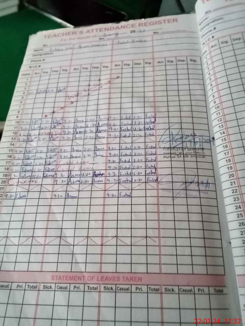 | Name: Fa**** bi**** Designation: (School Headmaster's/Headmistress's) PST Phone/Cell Number: 03**** |