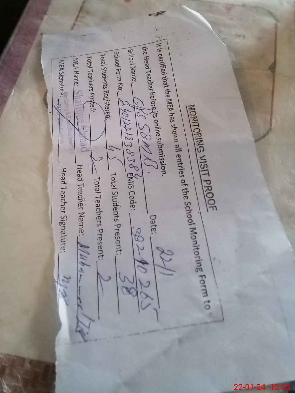 | EMIS Code: 38210265 | Name of School: GPS CHAK NO. 58 MB | |||
