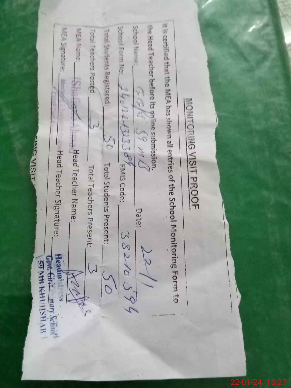 | EMIS Code: 38210594 | Name of School: GGPS CHAK NO. 59 MB | |||