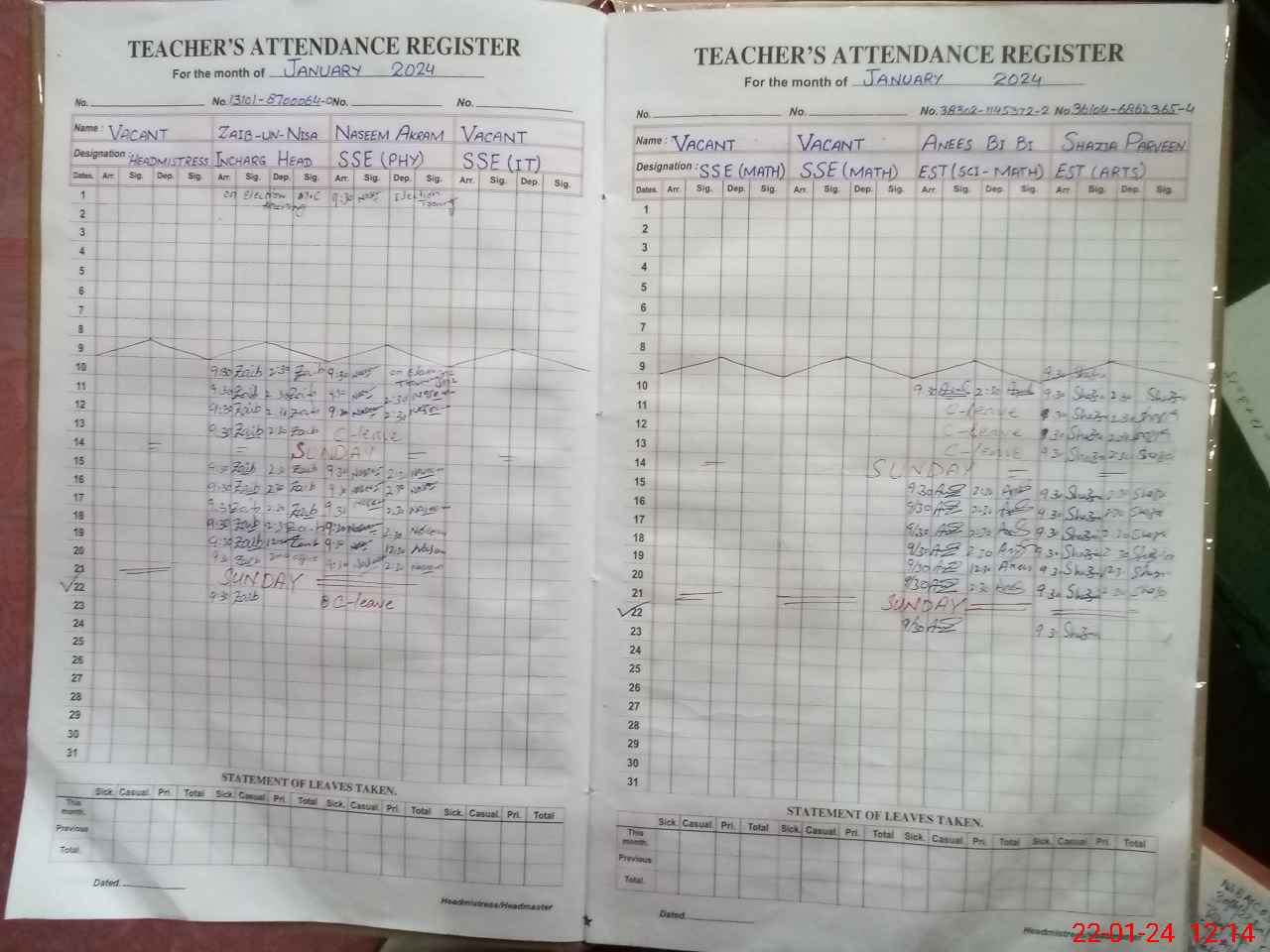 | 36**** | Na**** Ak**** | 2 | 0 | 0 | 29 | 0 | 0 | 0 | 0 | 0 | 0 | Absent (Un-Authorized) | |