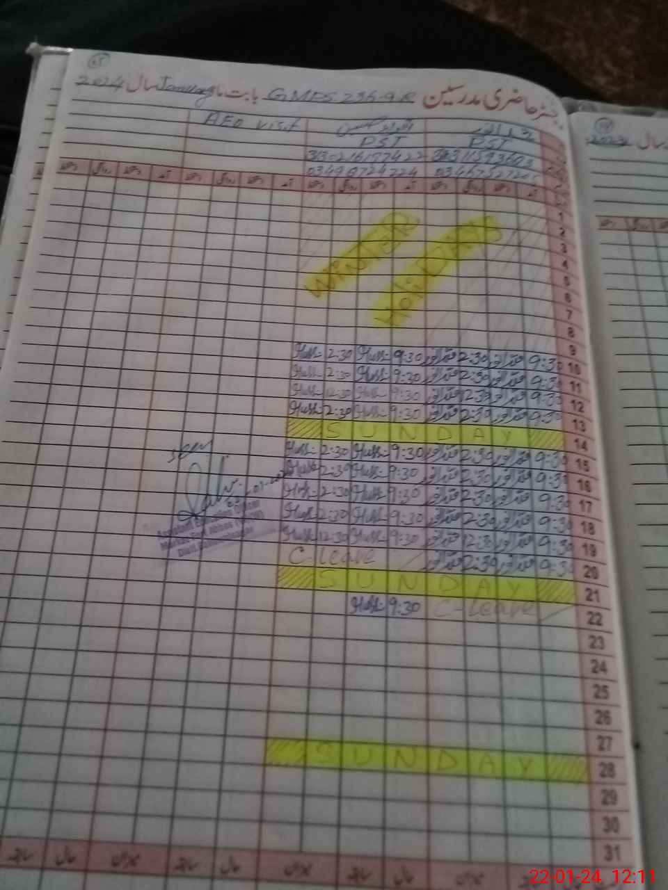 | Name: Iq**** Hu**** Designation: (School Headmaster's/Headmistress's) PST Phone/Cell Number: 03**** |