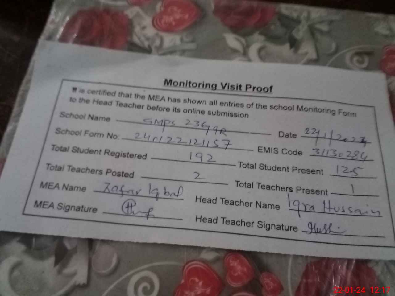 | EMIS Code: 31130284 | Name of School: GMPS CHAK NO. 236/9-R | |||