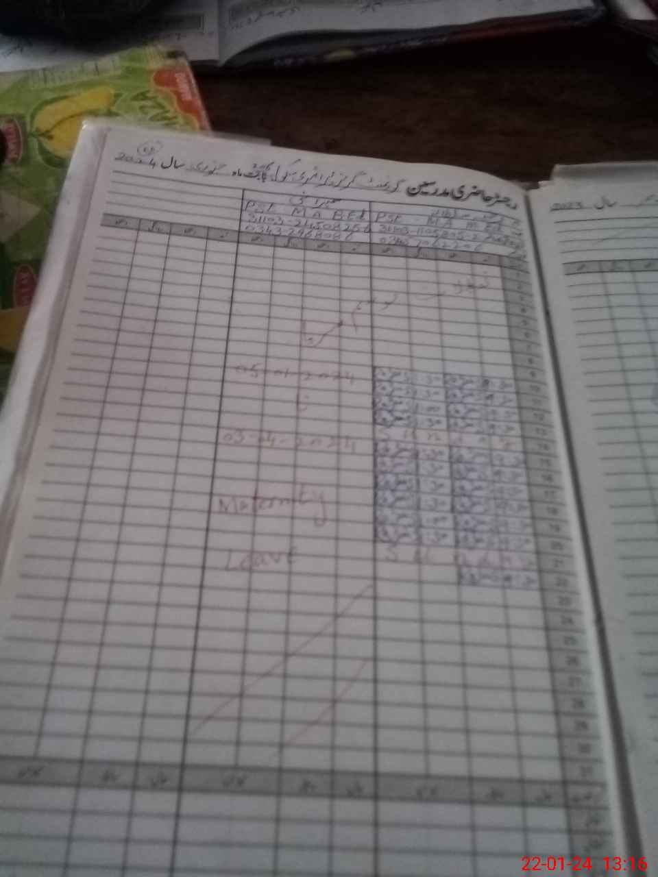 | Leave | Duty | Absent | Maternity | Medical | Ex- Pak |