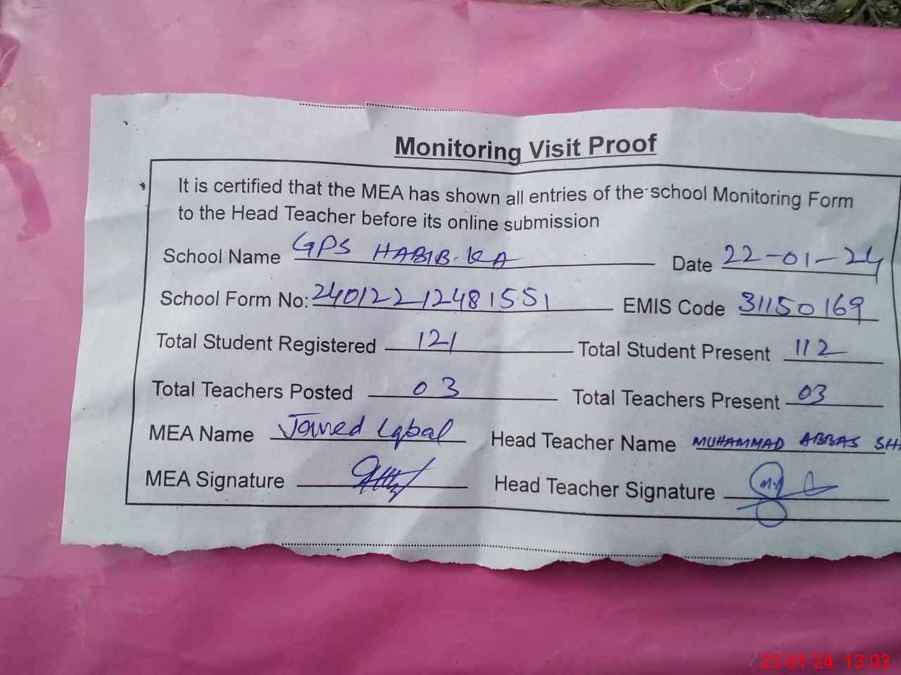 | EMIS Code: 31150169 | Name of School: GPS HABIB KA | |||