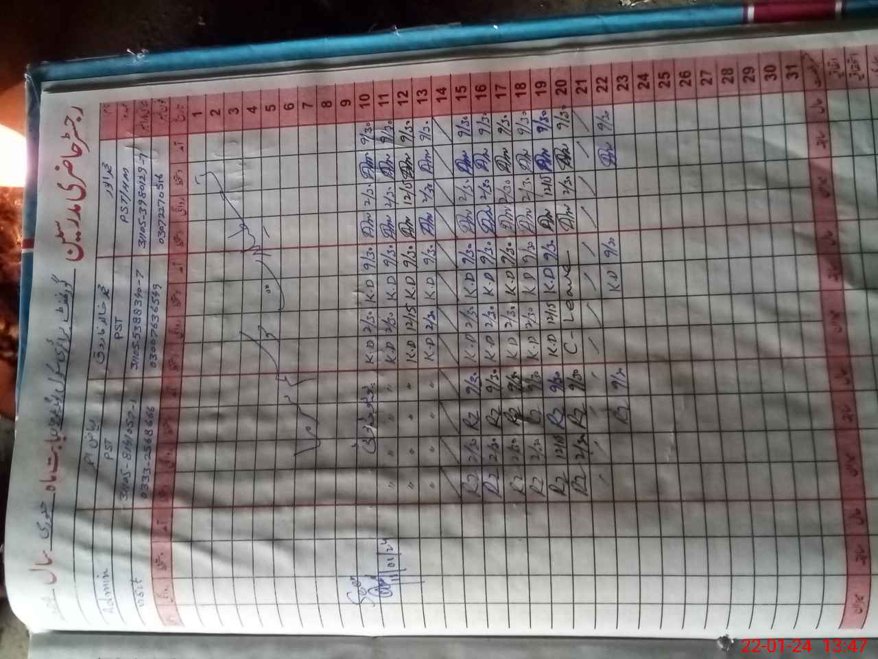 | CNIC | Full Name | Designation | R/C | Absence During Last Calender Month |