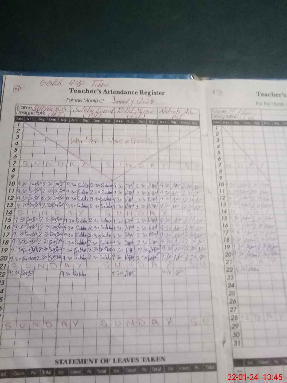 | Leave | Duty | Absent | Maternity | Medical | Ex- Pak |