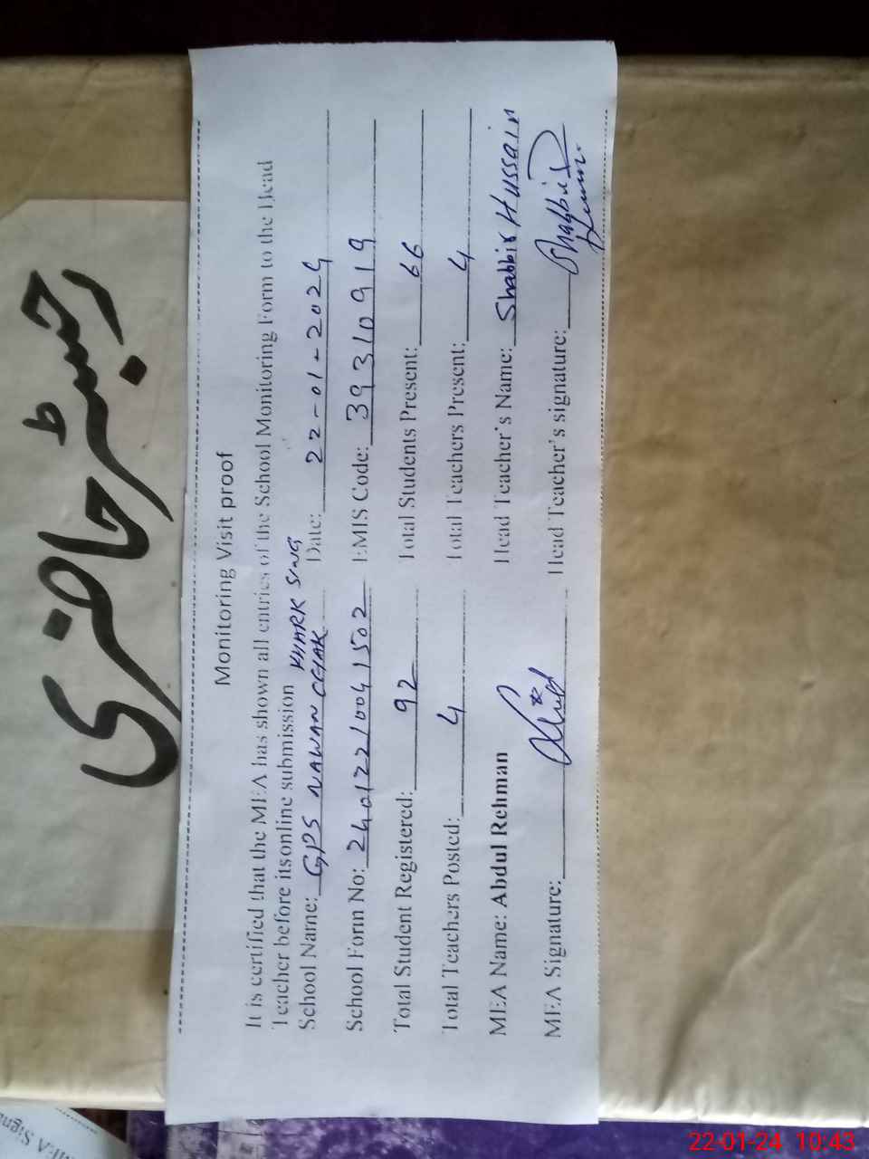 | EMIS Code: 39310919 | Name of School: GPS NAWAN CHAK KHARAK SINGH | |||