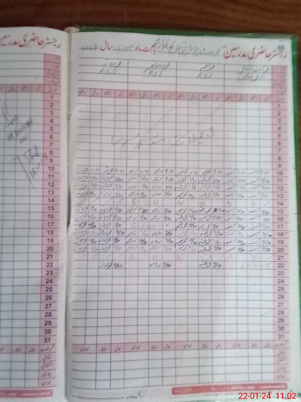 | CNIC | Full Name | Designation | R/C | Absence During Last Calender Month |