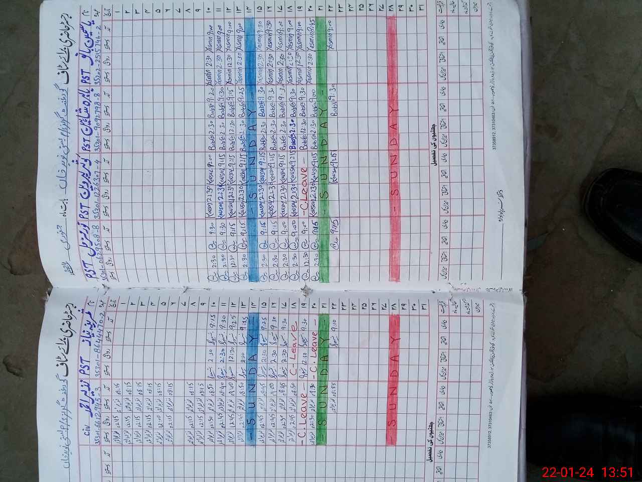 | CNIC | Full Name | Designation | R/C | Absence During Last Calender Month |