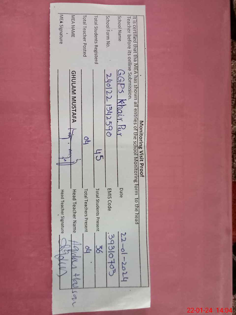 | EMIS Code: 39310703 | Name of School: GGPS KHAIR PUR | |||