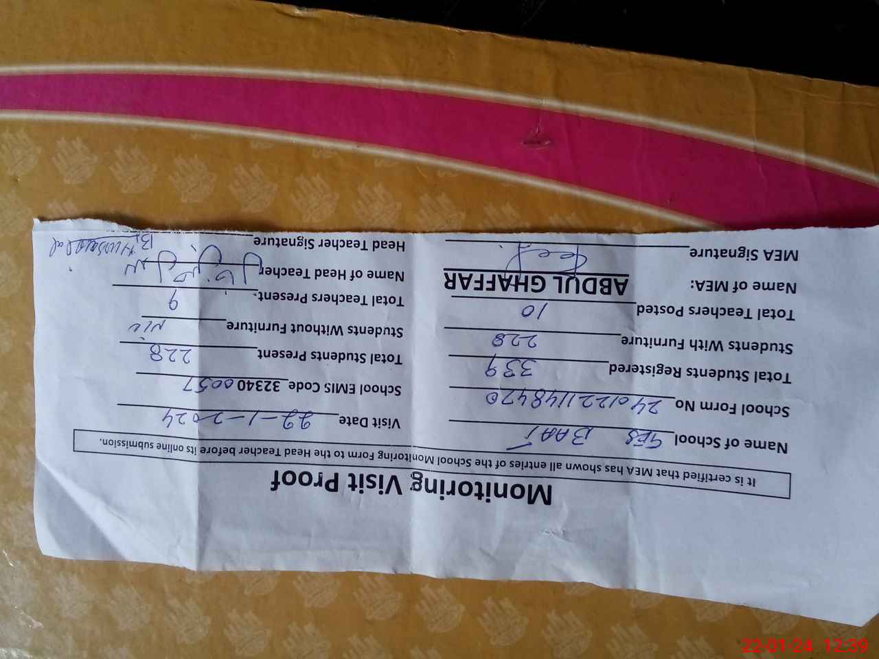 | Name: Mu**** Ta**** Designation: (School Headmaster's/Headmistress's) S S T Phone/Cell Number: 03**** |